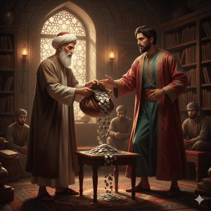 Paradoks Hati yang “Haus”: Di era di mana semua orang berlomba menumpuk kekayaan, Syekh Junaid mengajarkan bahwa kemiskinan sejati bukanlah kekurangan harta, melainkan ketidakmampuan hati untuk merasa cukup. Si pemberi mungkin punya tumpukan emas (dinar), tapi karena hatinya masih terikat pada harapan peningkatan, ia justru sosok yang paling membutuhkan ketenangan jiwa.